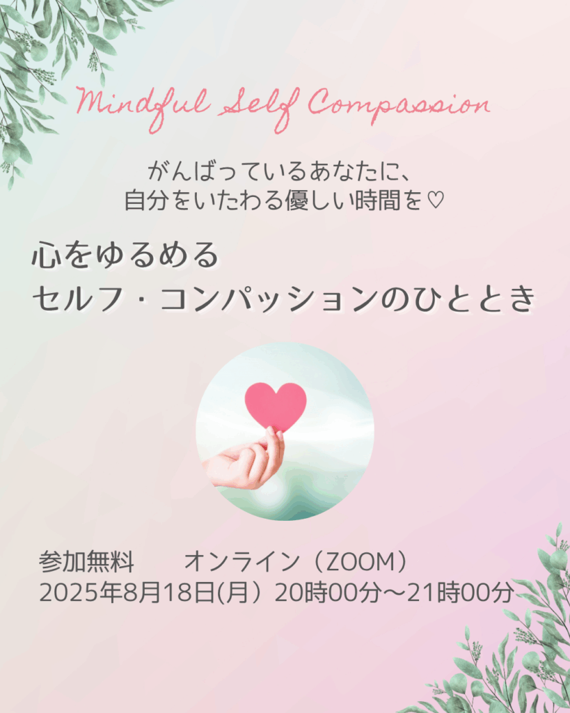 8月18日に、オンラインで無料のセルフ・コンパッション体験会を開催します。