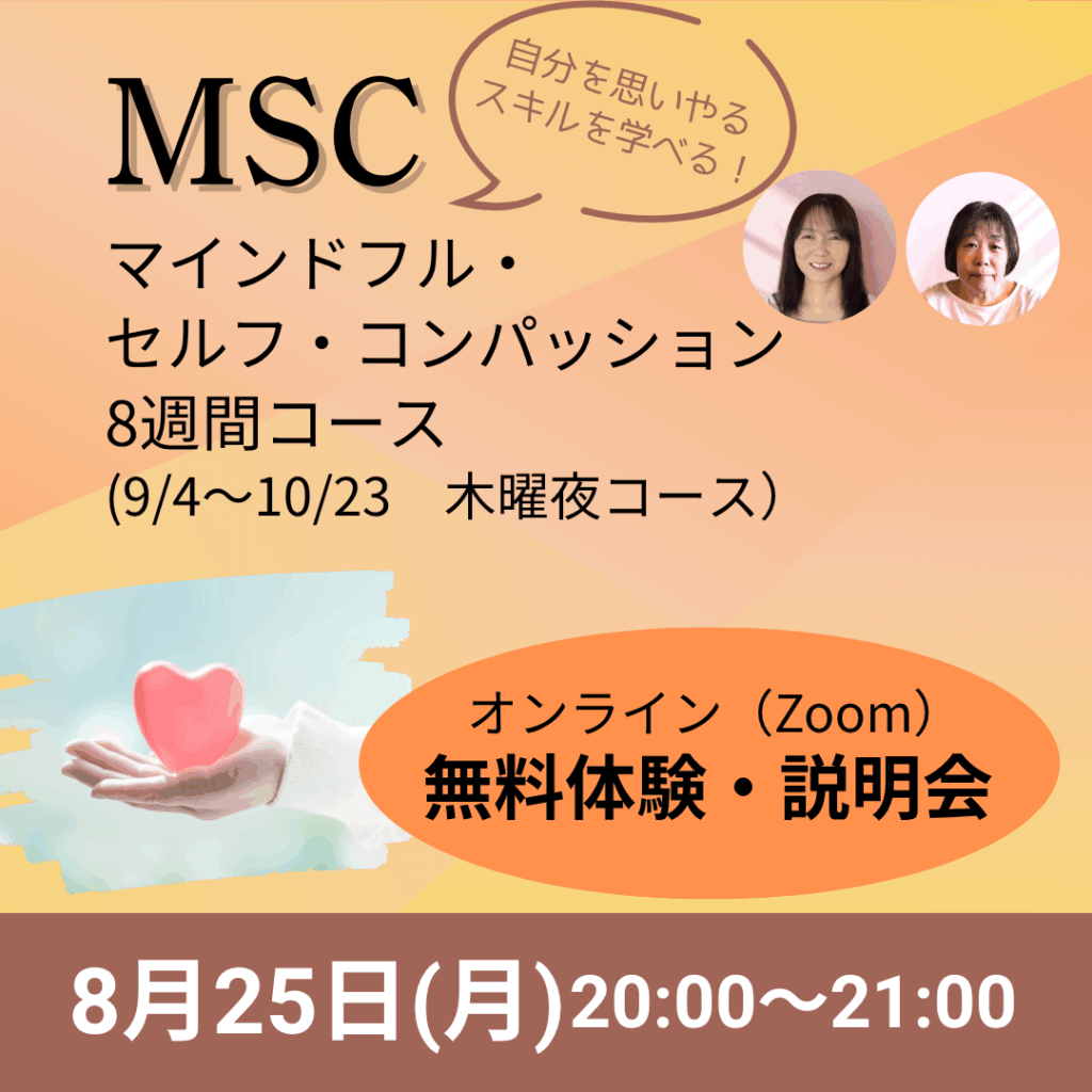 MSC(マインドフル・セルフ・コンパッション) 8週間コース 無料体験説明会【2025/8/25開催】