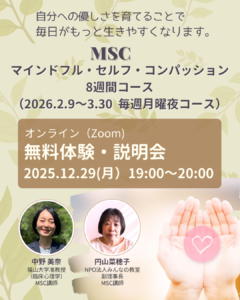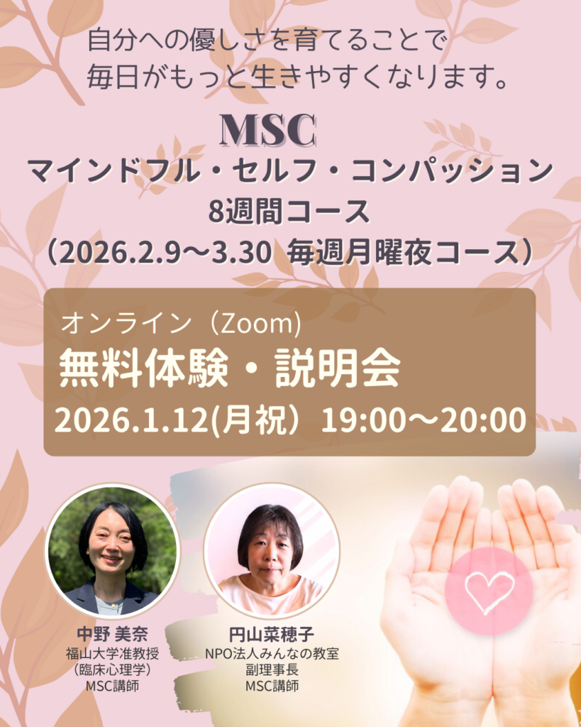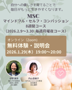 MSC(マインドフル・セルフ・コンパッション) 8週間コース 無料体験説明会【2026/1/12開催】